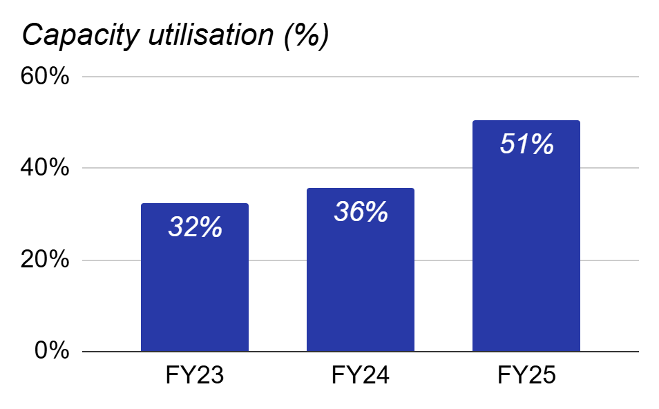 Capacity Utilisation: Utilisation has improved driven by higher domestic sales volumes.